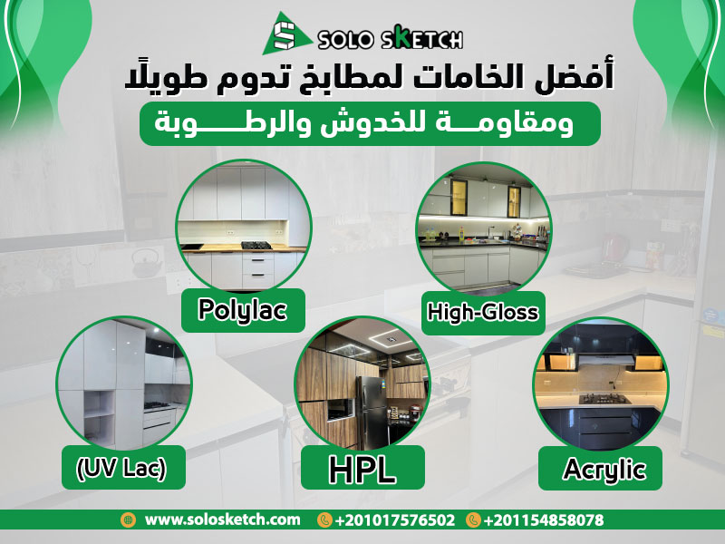 عندما يتعلق الأمر بتصميم المطابخ الحديثة، فإن اختيار الخامات المناسبة هو العامل الأساسي الذي يضمن متانتها واستدامتها. الخامات المقاومة للبكتيريا والرطوبة ليست فقط اختيارًا صحيًا، بل تلعب أيضًا دورًا مهمًا في الحفاظ على جودة المطبخ ومظهره. شركة سولو سكيتش (Solo Sketch) تعد واحدة من أفضل الشركات المصرية المتخصصة في تقديم مطابخ عصرية تجمع بين التصميم العملي والجودة العالية. باستخدام مواد حديثة مثل Polylac وHPL، تقدم الشركة مطابخ تلبي احتياجات المنازل العصرية.