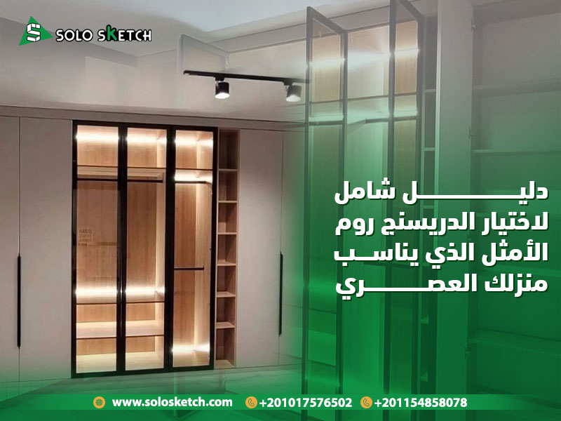 اختيار الشركة المناسبة لتصميم دريسنج رومك يجعل العملية أكثر سهولة وجودة بالتأكيد. بالإضافة إلى ذلك، مع سولو سكيتش، ستضمن تصميمًا عصريًا باستخدام أفضل الخامات مع التركيز على الحلول الذكية.